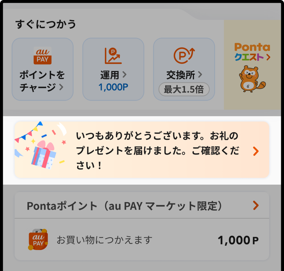 引き続き、au Ponta ポータルおよびありがとうギフトをよろしくお願いいたします。
